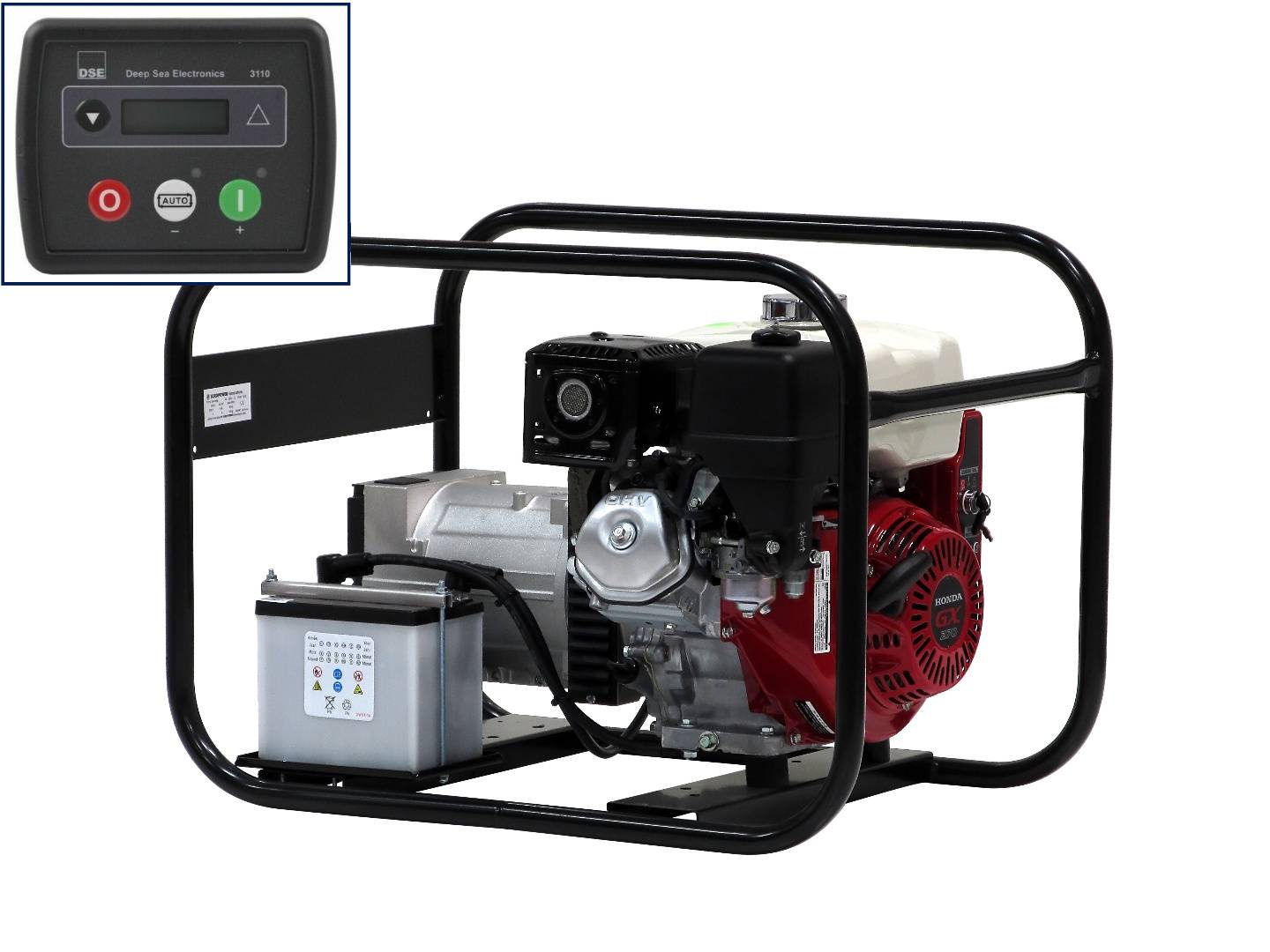 Profesionální 1-fázová elektrocentrála s výkonem 4 kVA, elektrickým startem a osazená automatickým systémem zapnutí/vypnutí přes vnější impuls (DSE3110)