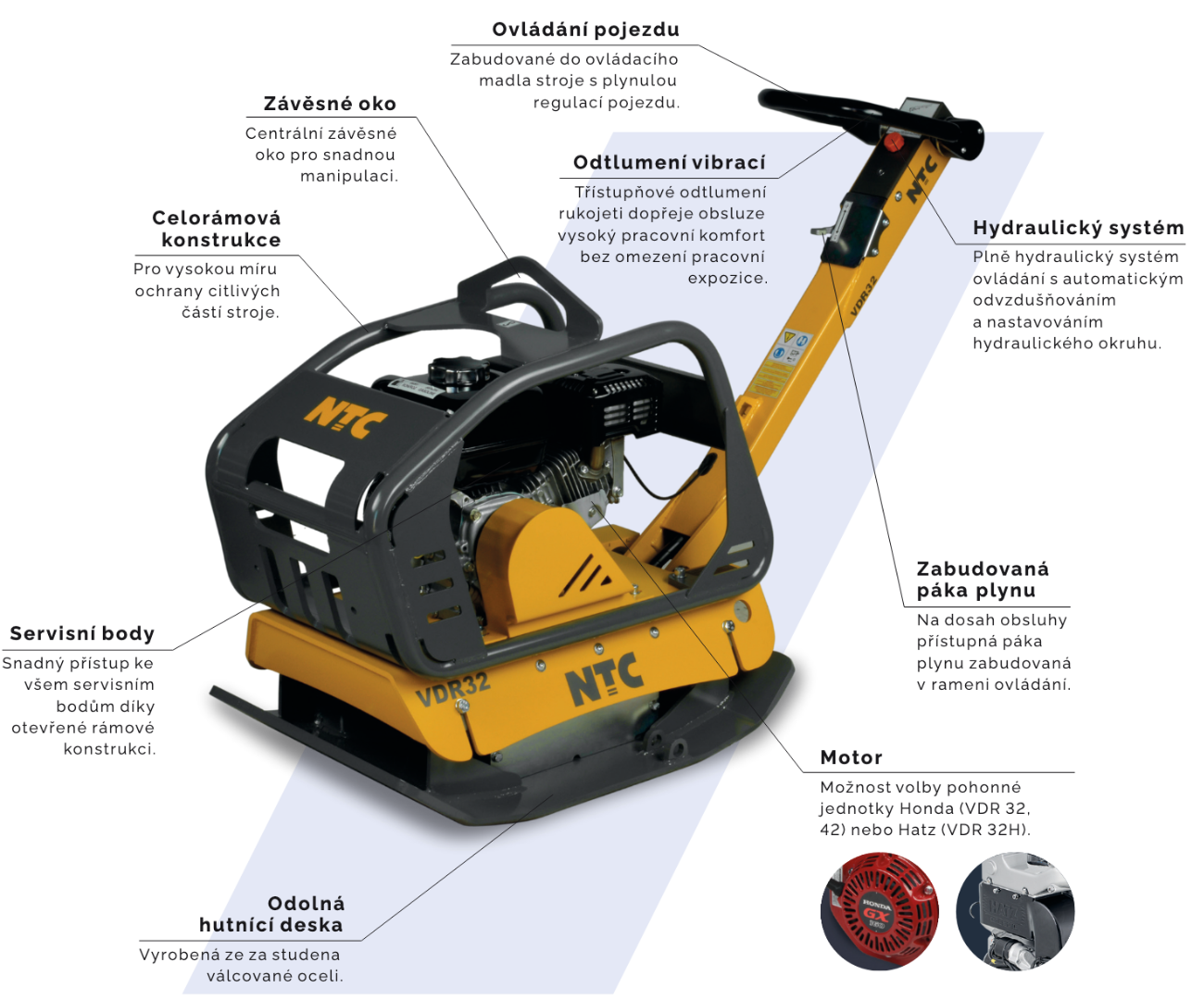 Reverzní vibrační deska VDR32H o hmotnosti 215 kg s dieselovým motorem HATZ 1B20